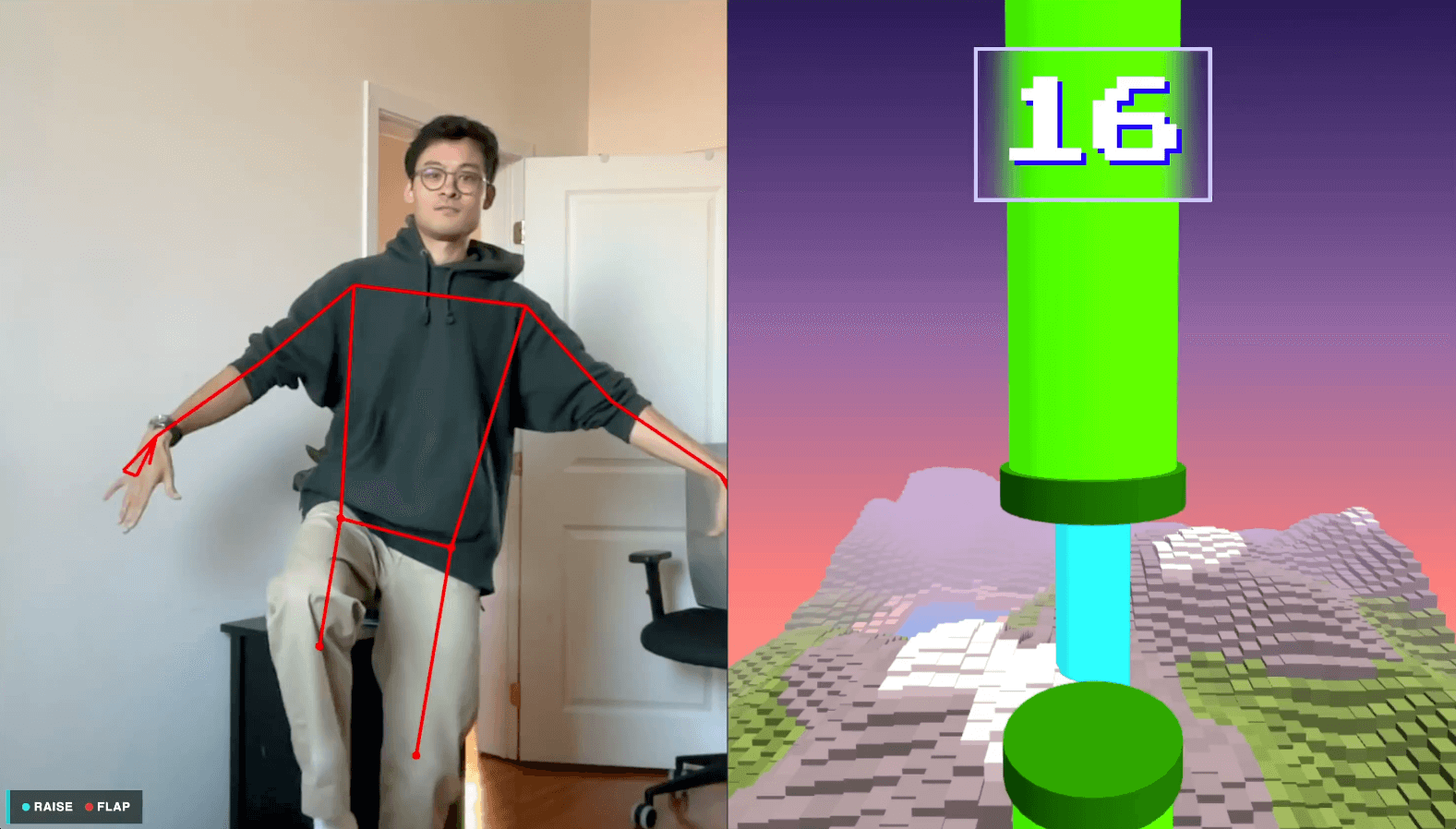Technologies used: threejs, mediapipe AI computer vision, HTML/CSS/JS